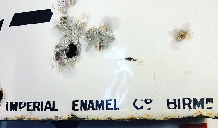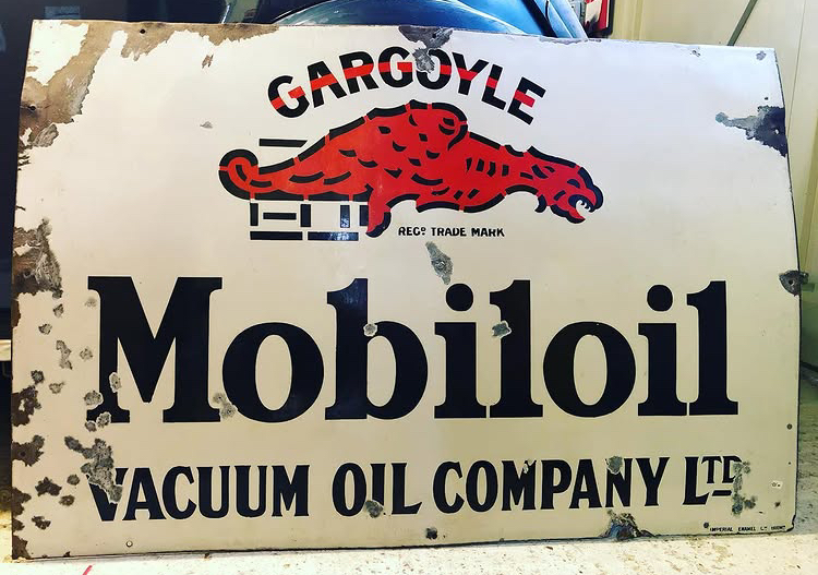 Ancienne plaque émaillée CARGOYLE MOBILOIL encore dans son jus .